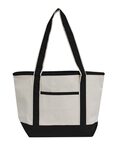 OAD 12.0 Ounce Promotional Medium Beach Tote. 12 oz/LYD cotton canvas boater. Interior zippered pocket. 5.5W x 6.25H. 31-inch handles with 12 drop. Non-branded label/tag. 18.5 x 12 x 5.5.